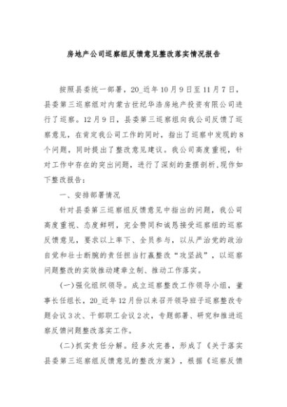 / 【七哥公文】2024年:房地产公司巡察组反馈意见整改落实情况报告+更多免费公文+VX:QiGeGongWen2024
