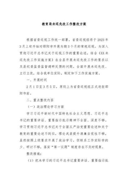/ 【七哥公文】2024年:教育局未巡先改工作整改方案+更多免费公文+VX:QiGeGongWen2024