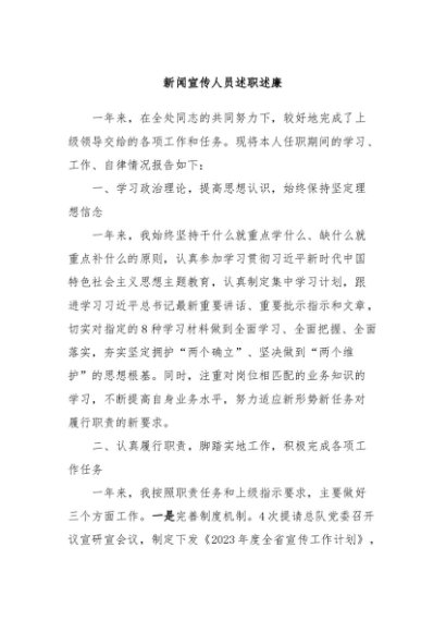 【七哥公文】2024年:新闻宣传人员述职述廉+更多免费公文+VX:QiGeGongWen2024