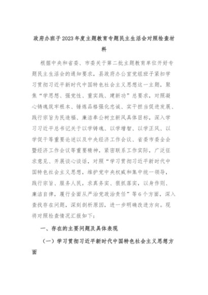 【七哥公文】2024年:政府办班子2023年度主题教育专题民主生活会对照检查材料+更多免费公文+VX:QiGeGongWen2024