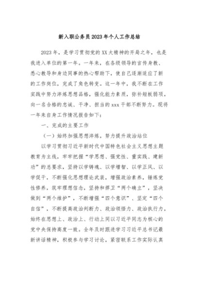 / 【七哥公文】2024年:新入职公务员2023年个人工作总结+更多免费公文+VX:QiGeGongWen2024