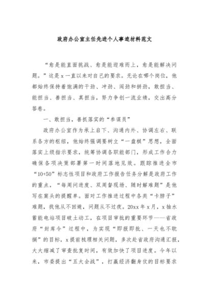 / 【七哥公文】2024年:政府办公室主任先进个人事迹材料范文+更多免费公文+VX:QiGeGongWen2024