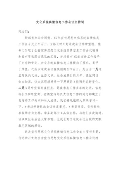 / 【七哥公文】2024年:文化系统舆情信息工作会议主持词+更多免费公文+VX:QiGeGongWen2024