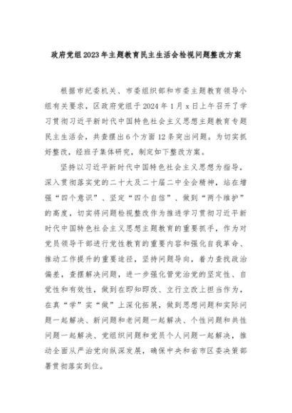 【七哥公文】2024年:政府党组2023年主题教育民主生活会检视问题整改方案.+更多免费公文+VX:QiGeGongWen2024