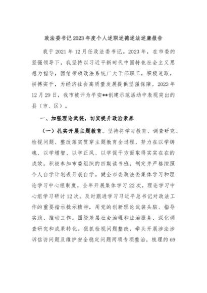 / 【七哥公文】2024年:政法委书记2023年度个人述职述德述法述廉报告+更多免费公文+VX:QiGeGongWen2024