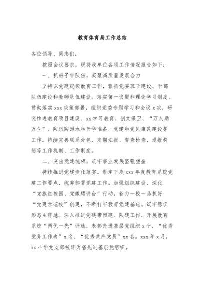【七哥公文】2024年:教育体育局工作总结+更多免费公文+VX:QiGeGongWen2024