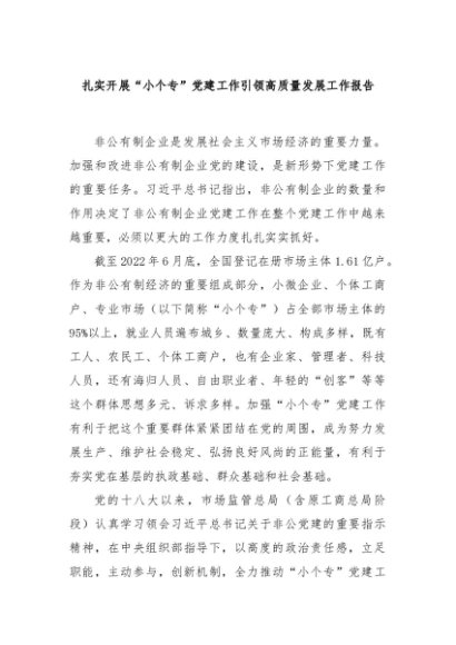 / 【七哥公文】2024年:扎实开展“小个专”党建工作引领高质量发展工作报告+更多免费公文+VX:QiGeGongWen2024