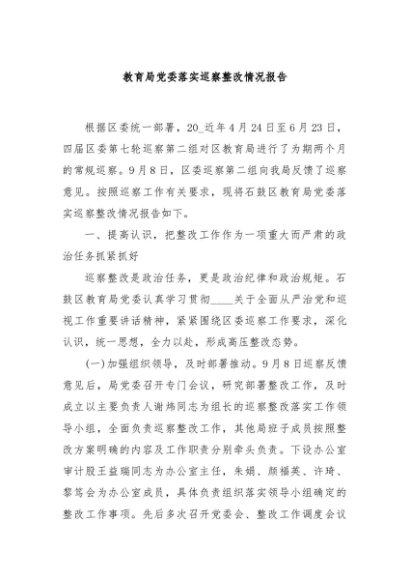/ 【七哥公文】2024年:教育局党委落实巡察整改情况报告+更多免费公文+VX:QiGeGongWen2024
