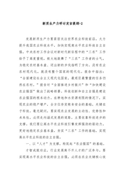 / 【七哥公文】2024年:新质生产力研讨发言提纲-2+更多免费公文+VX:QiGeGongWen2024