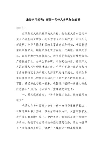 / 【七哥公文】2024年:廉洁家风党课:缅怀一代伟人传承红色基因+更多免费公文+VX:QiGeGongWen2024