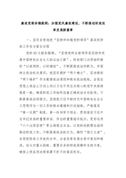 【七哥公文】2024年:廉政党课讲稿提纲:加强党风廉政建设,不断推动财政改革发展新篇章+更多免费公文+VX:QiGeGongWen2024