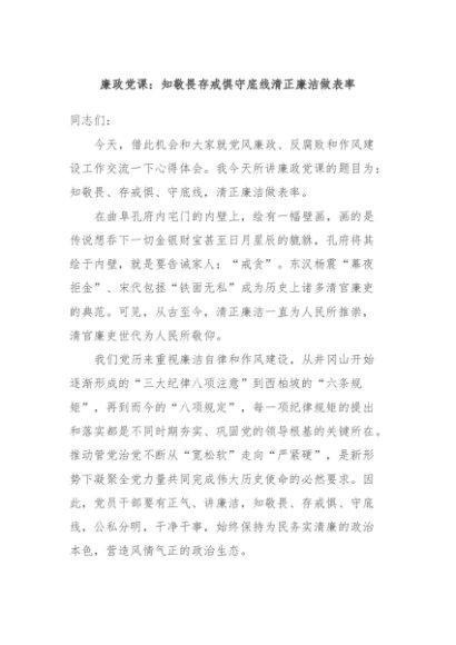 / 【七哥公文】2024年:廉政党课:知敬畏存戒惧守底线清正廉洁做表率+更多免费公文+VX:QiGeGongWen2024