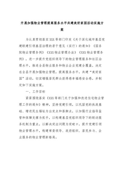 【七哥公文】2024年:开展加强物业管理提高服务水平共建美好家园活动实施方案+更多免费公文+VX:QiGeGongWen2024