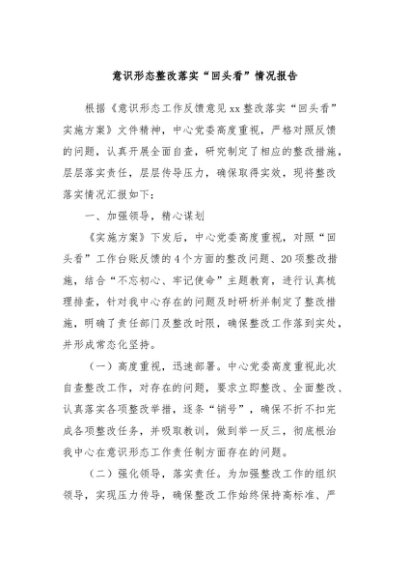 / 【七哥公文】2024年:意识形态整改落实“回头看”情况报告+更多免费公文+VX:QiGeGongWen2024