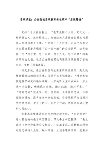 / 【七哥公文】2024年:思政课堂:公安院校思政教育贵在筑牢“忠诚警魂”+更多免费公文+VX:QiGeGongWen2024