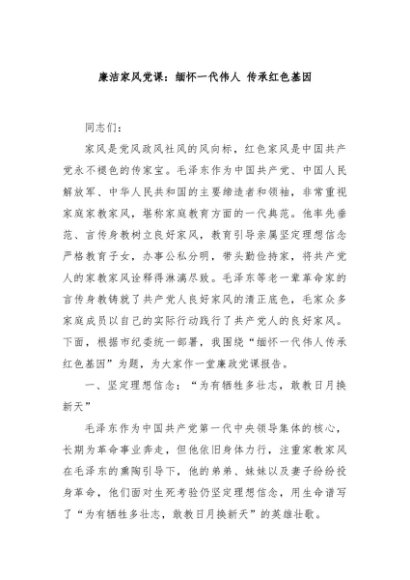 / 【七哥公文】2024年:廉洁家风党课:缅怀一代伟人 传承红色基因+更多免费公文+VX:QiGeGongWen2024