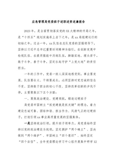 / 【七哥公文】2024年:应急管理局党委班子述职述责述廉报告+更多免费公文+VX:QiGeGongWen2024
