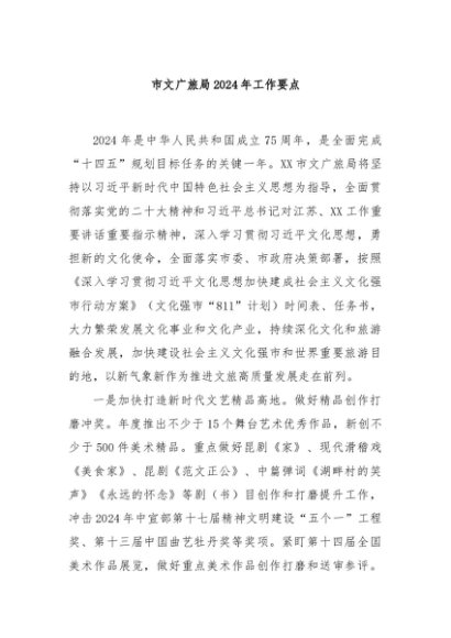 / 【七哥公文】2024年:市文广旅局2024年工作要点+更多免费公文+VX:QiGeGongWen2024
