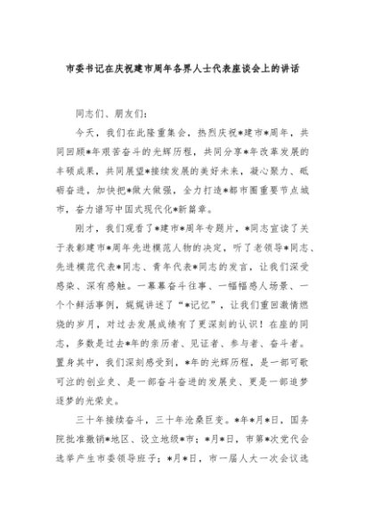 / 【七哥公文】2024年:市委书记在庆祝建市周年各界人士代表座谈会上的讲话+更多免费公文+VX:QiGeGongWen2024