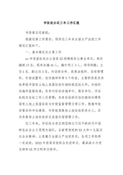/ 【七哥公文】2024年:市征收办近三年工作汇报+更多免费公文+VX:QiGeGongWen2024