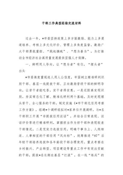 / 【七哥公文】2024年:干部工作典型经验交流材料+更多免费公文+VX:QiGeGongWen2024