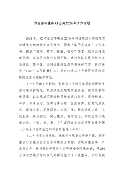 / 【七哥公文】2024年:市生态环境局XX分局2024年工作计划+更多免费公文+VX:QiGeGongWen2024