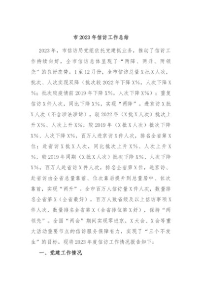 / 【七哥公文】2024年:市2023年信访工作总结+更多免费公文+VX:QiGeGongWen2024