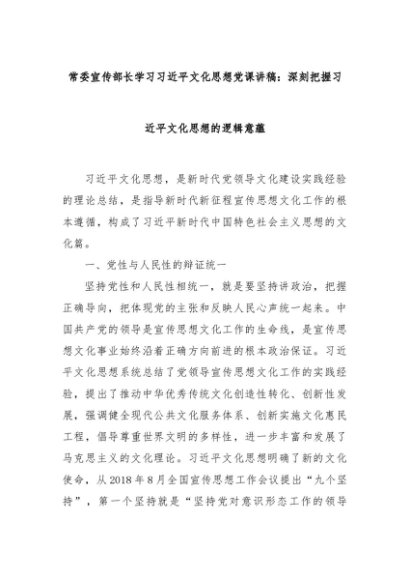 【七哥公文】2024年:常委宣传部长学习习近平文化思想党课讲稿:深刻把握习近平文化思想的逻辑意蕴+更多免费公文+VX:QiGeGongWen2024