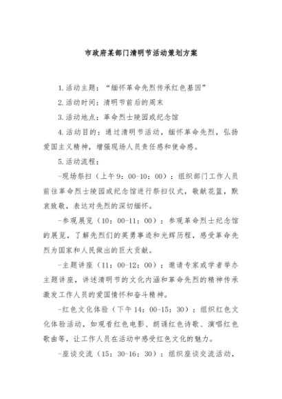 / 【七哥公文】2024年:市政府某部门清明节活动策划方案+更多免费公文+VX:QiGeGongWen2024