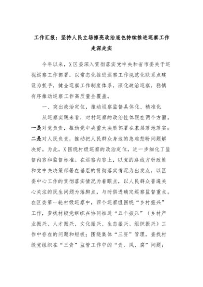【七哥公文】2024年:工作汇报:坚持人民立场擦亮政治底色持续推进巡察工作走深走实+更多免费公文+VX:QiGeGongWen2024
