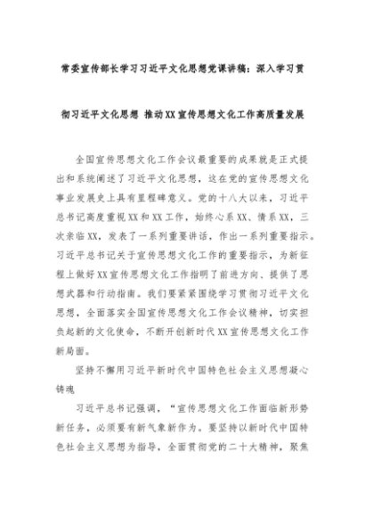 【七哥公文】2024年:常委宣传部长学习习近平文化思想党课讲稿:深入学习贯彻习近平文化思想 推动XX宣传思想文化工作高质量发展+更多免费公文+VX:QiGeGongWen2024