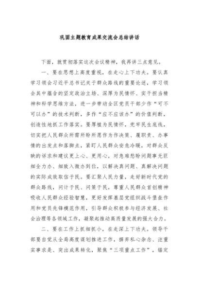 / 【七哥公文】2024年:巩固主题教育成果交流会总结讲话+更多免费公文+VX:QiGeGongWen2024