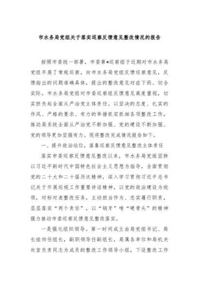 / 【七哥公文】2024年:市水务局党组关于落实巡察反馈意见整改情况的报告+更多免费公文+VX:QiGeGongWen2024