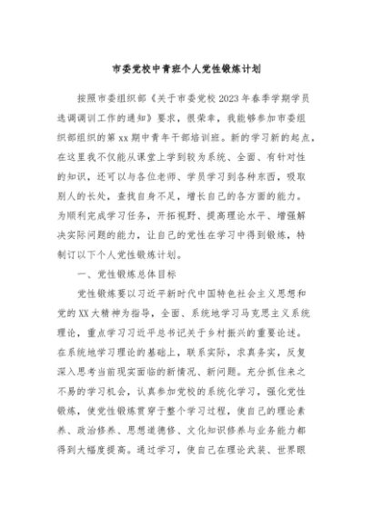 / 【七哥公文】2024年:市委党校中青班个人党性锻炼计划+更多免费公文+VX:QiGeGongWen2024