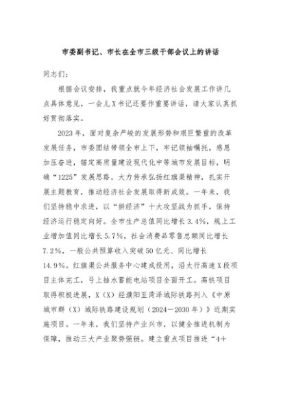 / 【七哥公文】2024年:市委副书记、市长在全市三级干部会议上的讲话+更多免费公文+VX:QiGeGongWen2024