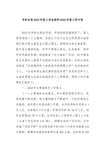 【七哥公文】2024年:市林业局2023年度工作总结和2024年度工作计划+更多免费公文+VX:QiGeGongWen2024