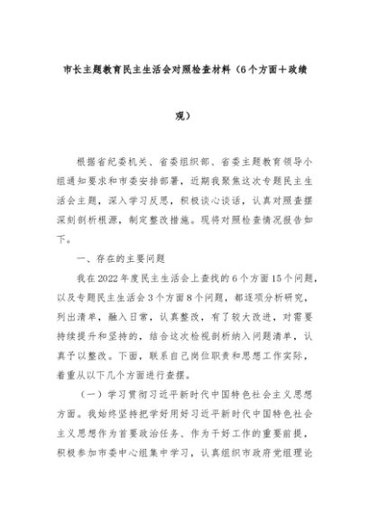 【七哥公文】2024年:市长主题教育民主生活会对照检查材料(6个方面+政绩观)+更多免费公文+VX:QiGeGongWen2024