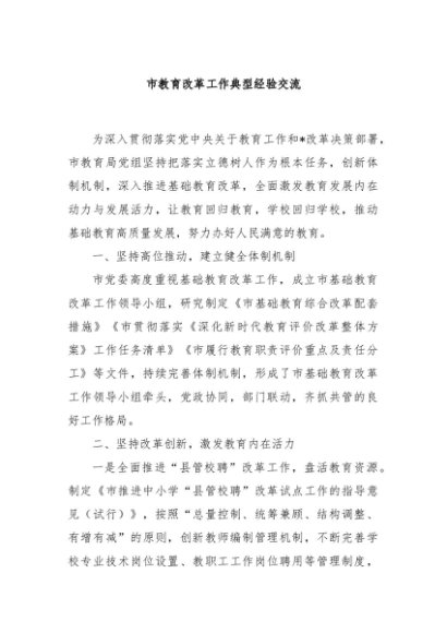 【七哥公文】2024年:市教育改革工作典型经验交流+更多免费公文+VX:QiGeGongWen2024