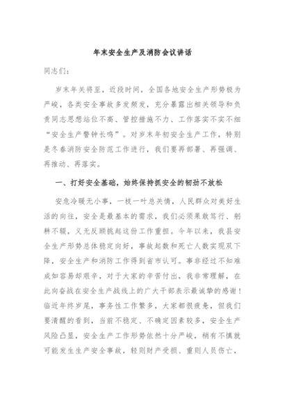 / 【七哥公文】2024年:年末安全生产及消防会议讲话+更多免费公文+VX:QiGeGongWen2024
