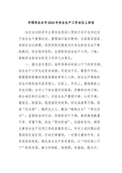 / 【七哥公文】2024年:市领导在全市2024年安全生产工作会议上讲话+更多免费公文+VX:QiGeGongWen2024