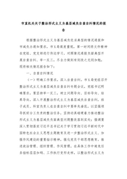 【七哥公文】2024年:市直机关关于整治形式主义为基层减负自查自纠情况的报告+更多免费公文+VX:QiGeGongWen2024