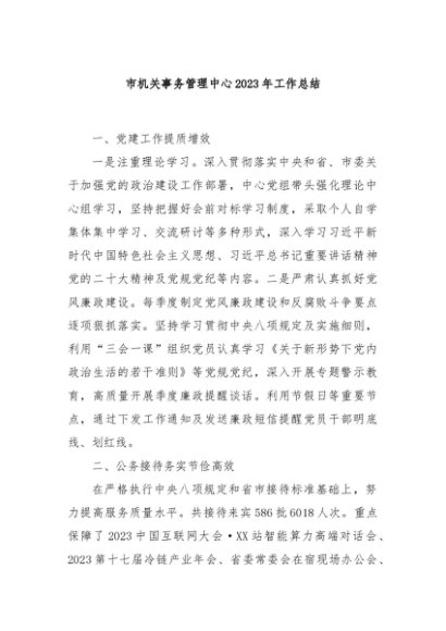 / 【七哥公文】2024年:市机关事务管理中心2023年工作总结+更多免费公文+VX:QiGeGongWen2024