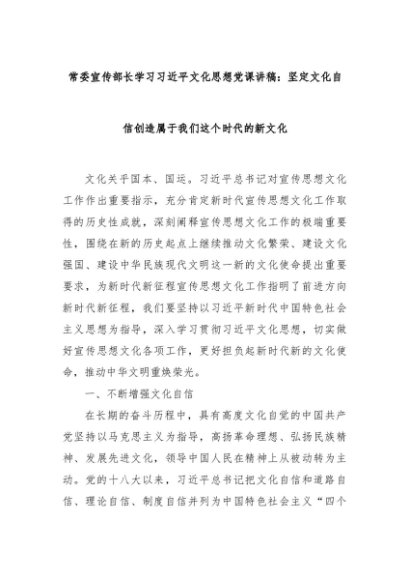 【七哥公文】2024年:常委宣传部长学习习近平文化思想党课讲稿:坚定文化自信创造属于我们这个时代的新文化+更多免费公文+VX:QiGeGongWen2024