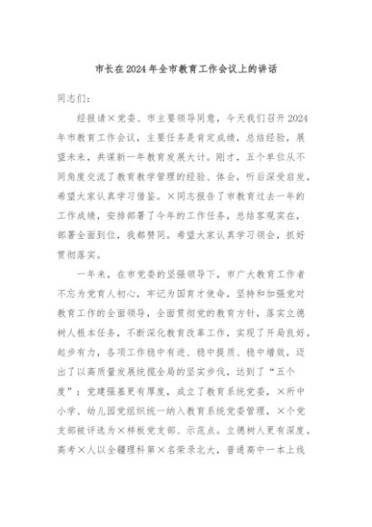 / 【七哥公文】2024年:市长在2024年全市教育工作会议上的讲话+更多免费公文+VX:QiGeGongWen2024