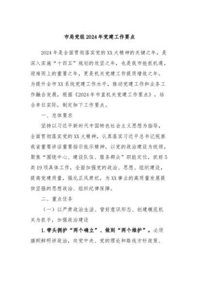 / 【七哥公文】2024年:市局党组2024年党建工作要点+更多免费公文+VX:QiGeGongWen2024