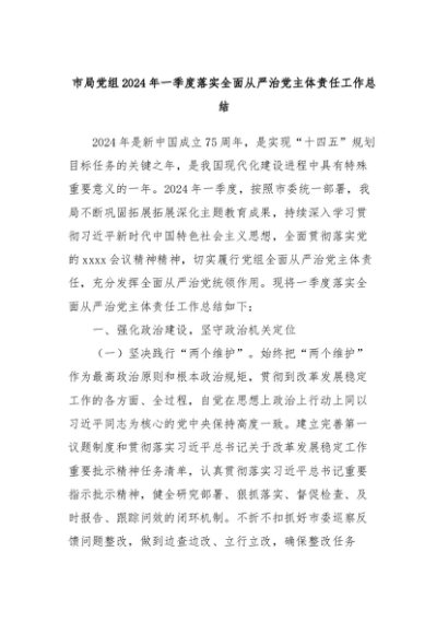 【七哥公文】2024年:市局党组2024年一季度落实全面从严治党主体责任工作总结+更多免费公文+VX:QiGeGongWen2024