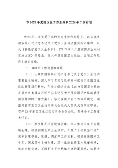 / 【七哥公文】2024年:市2023年爱国卫生工作总结和2024年工作计划+更多免费公文+VX:QiGeGongWen2024