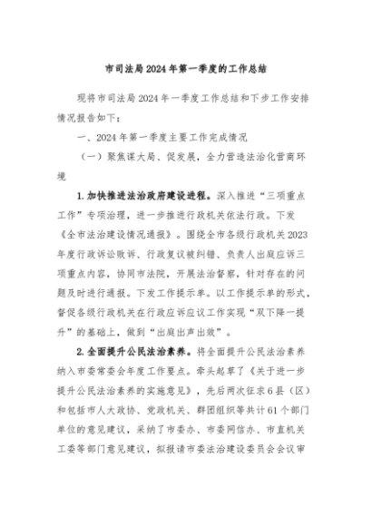/ 【七哥公文】2024年:市司法局2024年第一季度的工作总结+更多免费公文+VX:QiGeGongWen2024