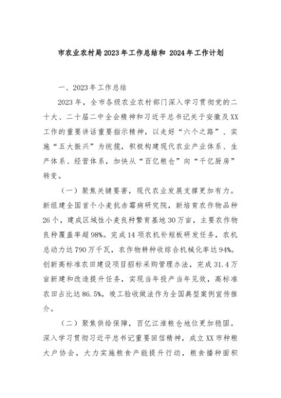 【七哥公文】2024年:市农业农村局2023年工作总结和 2024年工作计划+更多免费公文+VX:QiGeGongWen2024