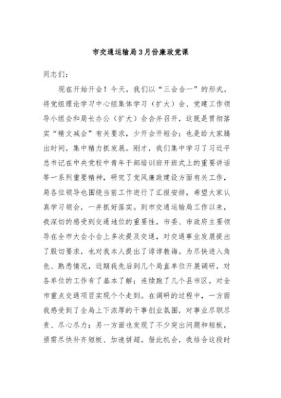 / 【七哥公文】2024年:市交通运输局3月份廉政党课+更多免费公文+VX:QiGeGongWen2024